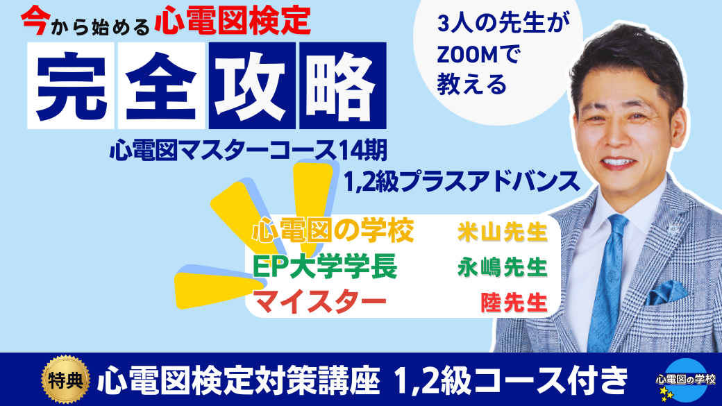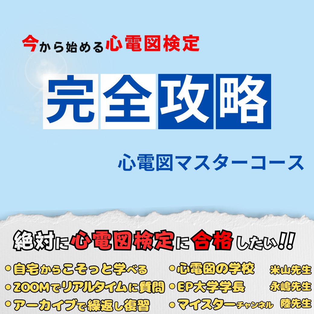 心電図マスターコース14期 1,2級プラスアドバンスでは、この検定対策講座に無料で参加できます!!